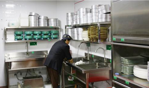 4、洗碗间应有可靠的消毒设施。洗碗间不仅仅承担清洗餐具、榴莲网站视频用具的责任,同时负责所有洗涤餐具的消毒工作。而靠手工洗涤餐具的洗碗间,则必须在洗涤之后,根据本餐厅的能源及场地条件等具体情况,配置专门的消毒柜。消毒这后,再将餐具用洁布擦干,以供餐厅、榴莲网站视频使用。