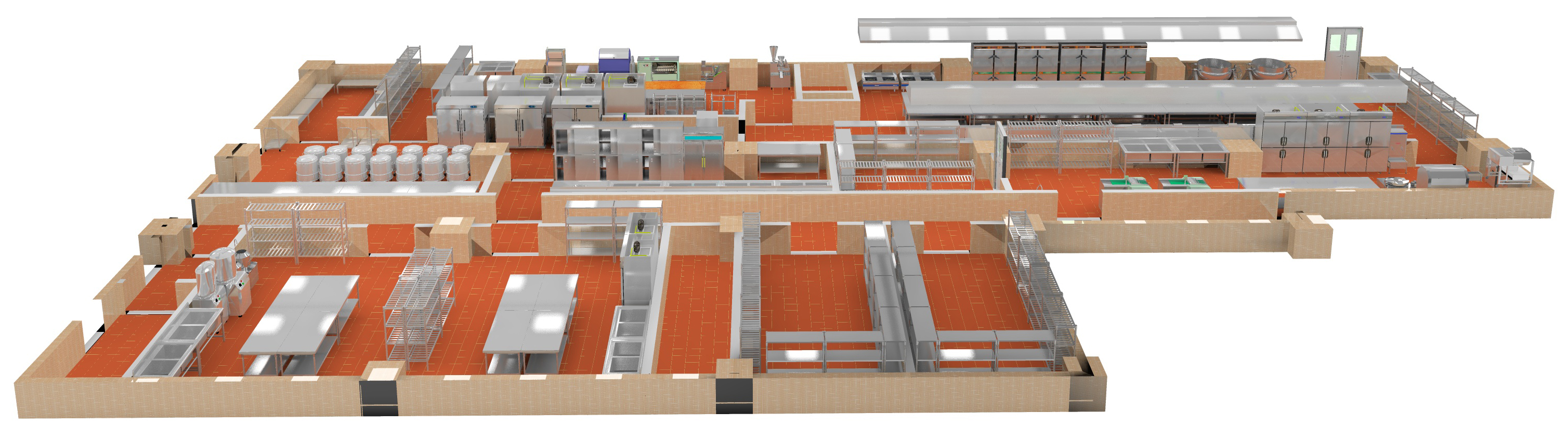 工作流程,主通道走向和工艺流程的走向基本是一致的。工艺流程走向决定餐具、人员、信息、废弃物的工作流程走向,首先确定工艺流程走向是朝向出餐的方向,再按工艺流程走向确定主通道的走向,主通道的走向进而决定了各工作间工艺流程走向,加工后的原料,出餐的方向都要通向主通道,又由主通道以最短的距离通向餐厅。小榴莲网站视频没有走廊式的通道,传菜通道就是主通道,直接通向餐厅。