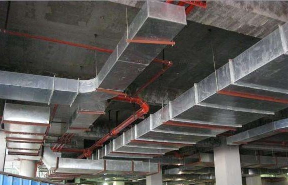所以,室内一般不采用圆形管道,主要用于室外。同样截面积的矩形管越扁,使用板材越多,压力损失越大,四角产生的涡流加大了压力损失,是产生噪声的主要原因。矩形管单面面积比较大,受到压力容易变形,产生声响,需要加厚板材和采用加强工艺。因此,在空间允许的情况下,尽量使矩形管四边相等。