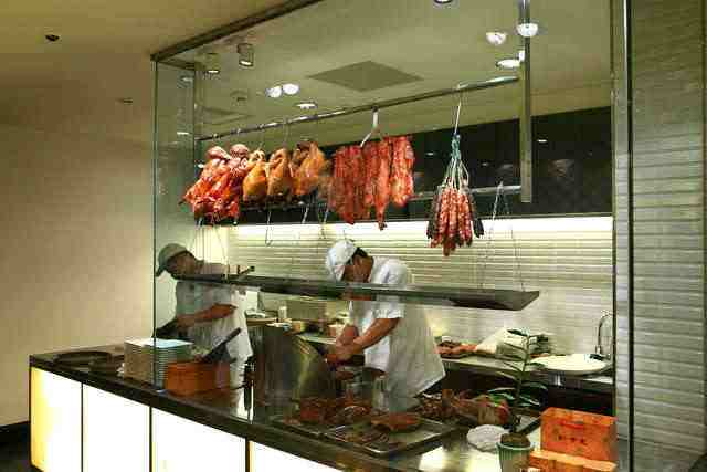 设备配置:选用可以保证烧腊间烧味,内味,腊味各种菜品制作供应的设备。烧烤设备设有烤猪炉和烤鸭炉,为保证腌制后风干,设有挂鸭架、电风扇和挂猪冰柜;卤味设置低汤炉;为了展示餐品设有玻璃保鲜展柜和腊味挂架;熟食保鲜设有保鲜工作台和熟食冰柜。