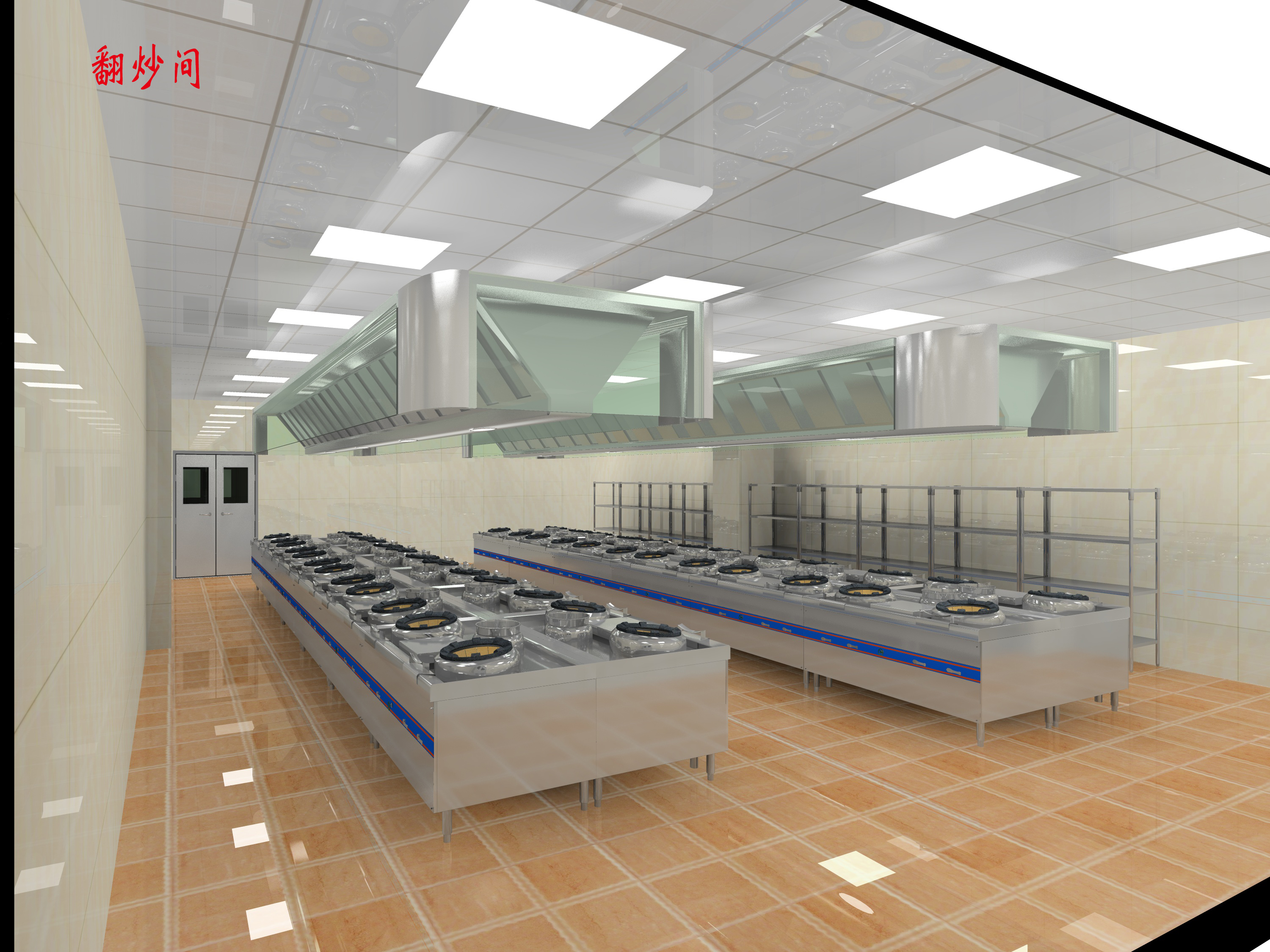 烹饪的炉头、 佐料和配菜的长台之间的间隔要得当,不可相离太远,以便利厨师在烹饪时灵敏使用佐料和配菜,而洗菜切菜的长台规划要与炉头相阻隔,以避免过多的油烟触及。洗刷区的设置应遵从洁污分流的准则,让餐具及时得到清洗, 便利再次使用。