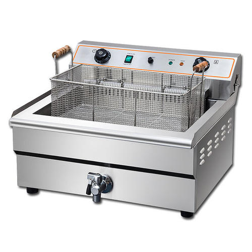 深油炸炉一般为长方形,主要由油槽、油脂过滤器、钢丝篮及热能控制装置等组成。炸炉大部分以电加热,能自动控制油温,主要用于炸制食品。