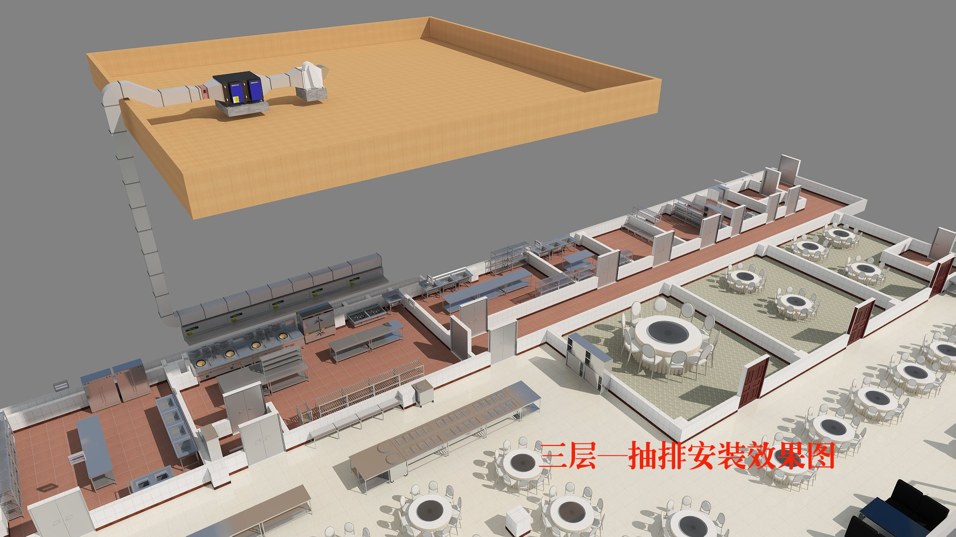 (2)排烟通风系统设计主要取决于排烟罩设计和风量计算,一般取决于榴莲网站视频设计的计算结果。榴莲网站视频设计人员在对现场考察后,进行榴莲网站视频排烟通风系统设计,设计方案更加符合实际。设计部门对榴莲网站视频排烟通风设计方案认定并完成相关的土建、电力保证等设计,如风口位置、基座及维护设施的设计。
