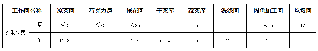 在规范中对工作专间有明确的定义:“指处理或短时间存放直接入口食品的专用操作间包括凉菜间、裱花间、备餐专间等。”榴莲视频APP在线观看这里的专间包含了其他专用工作间。各种专间温度控制参照规范的要求和一般做法。设计人员要结合实际提出设计要求,例如.大型食堂和快餐店,在就餐准备之前有大量的食材要加,特别是鱼、肉、禽、在室温下搁置较长时间,不能随时进行冷藏保鲜,夏季对室内的温度就要严格控制,或增加保鲜设备的容积、便于及时冷藏,防止经过浸泡、择洗、改刀的食材变质。严格控制各区温度和湿度是控制微生物生长、保证食品安全的关键。不同区域环境有不同的温度和湿度要求。主食库、调料库、干品库只要控制湿度,各加工区需要控制温度,见下表