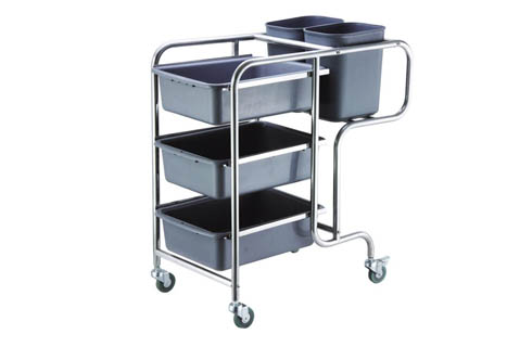 餐盘收集车也称不锈钢收集车,采用工程级塑料制成,坚固耐用,底部有万向轮,移动方便,铝合金支架,美观大方,便宜便捷,超大容量,坚固耐用。餐盘收集车适用于酒店、饭店、食堂等。