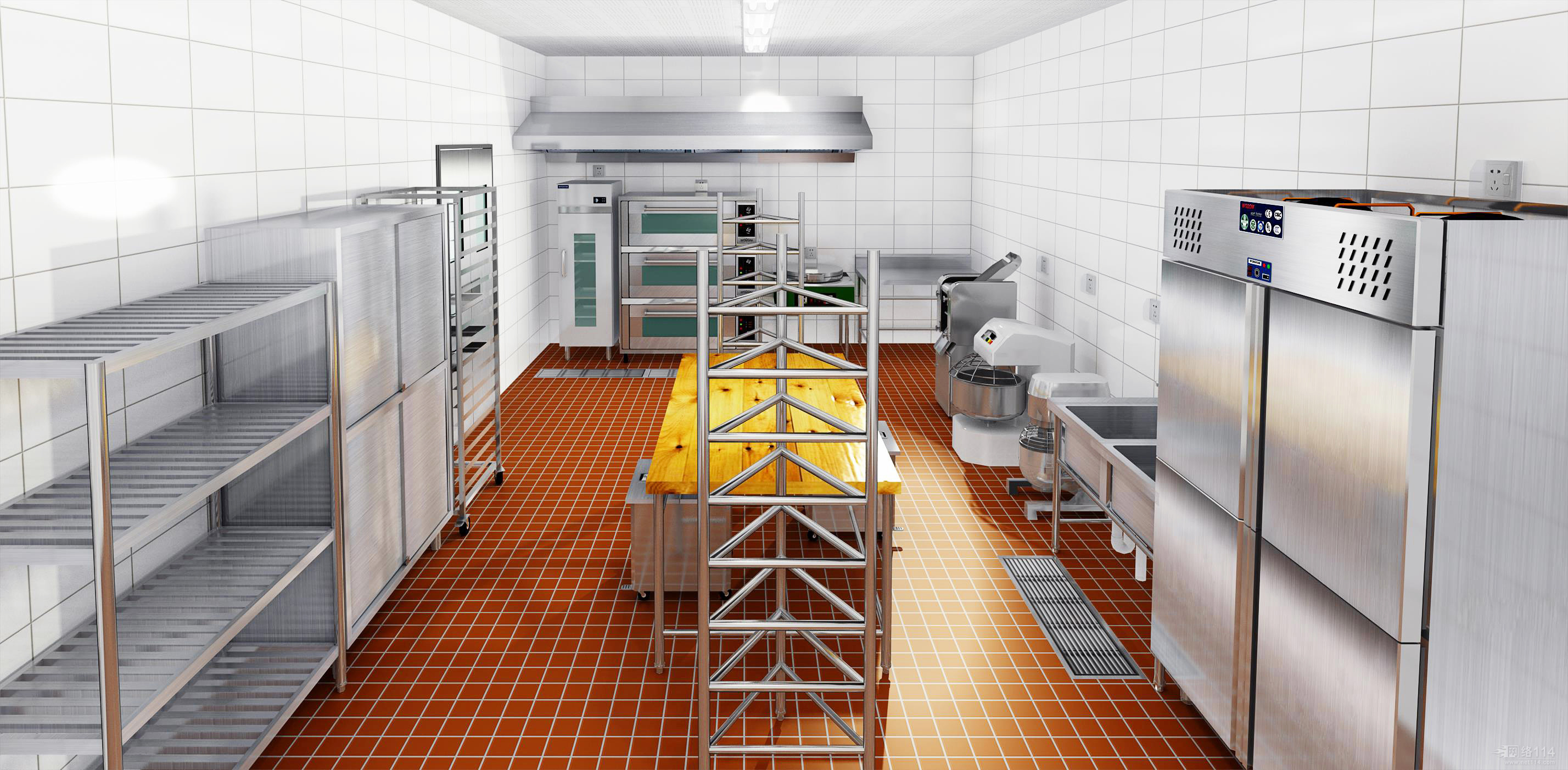 洗碗间:配置设备有不锈钢碗柜、不锈钢收残台、不锈钢水池、高温消毒柜这四件设备是必备的。如果有经济实力可以考虑洗碗机。