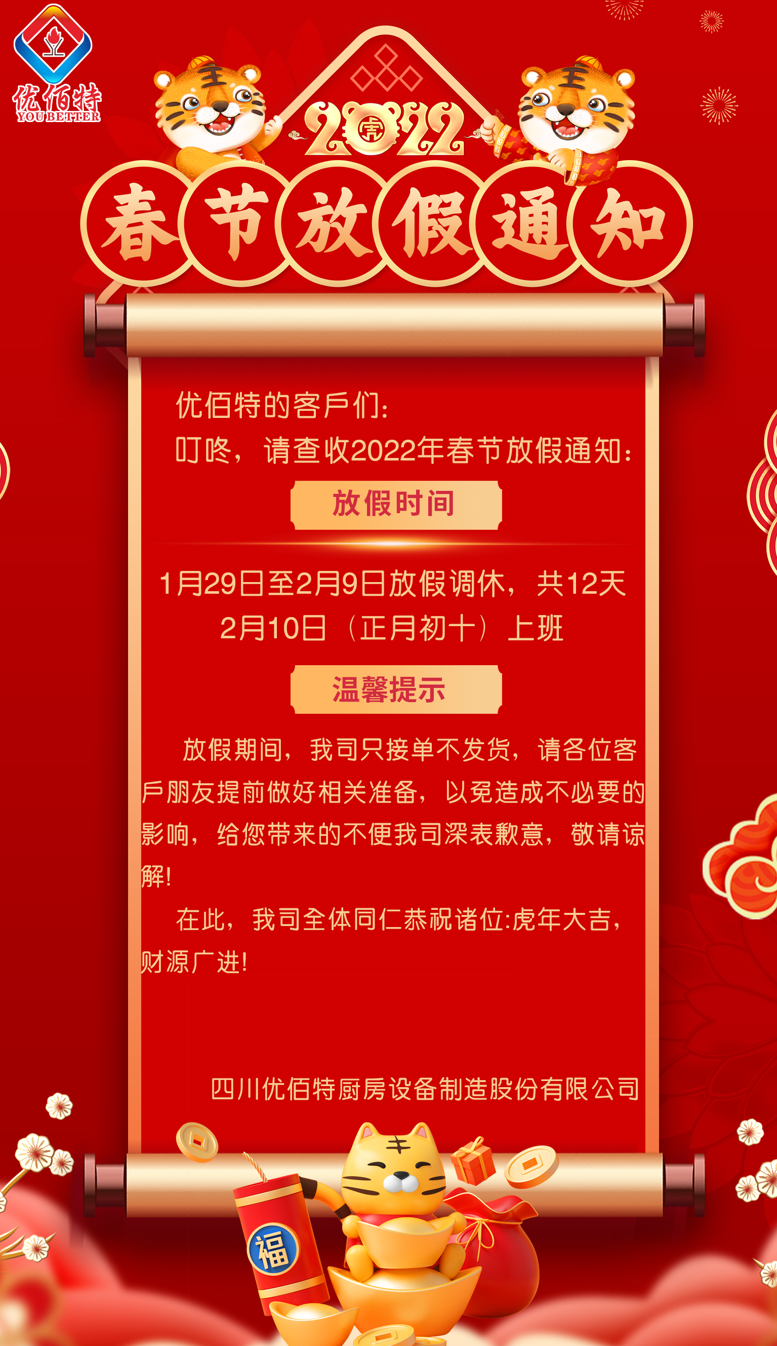 2022 春节放假通知