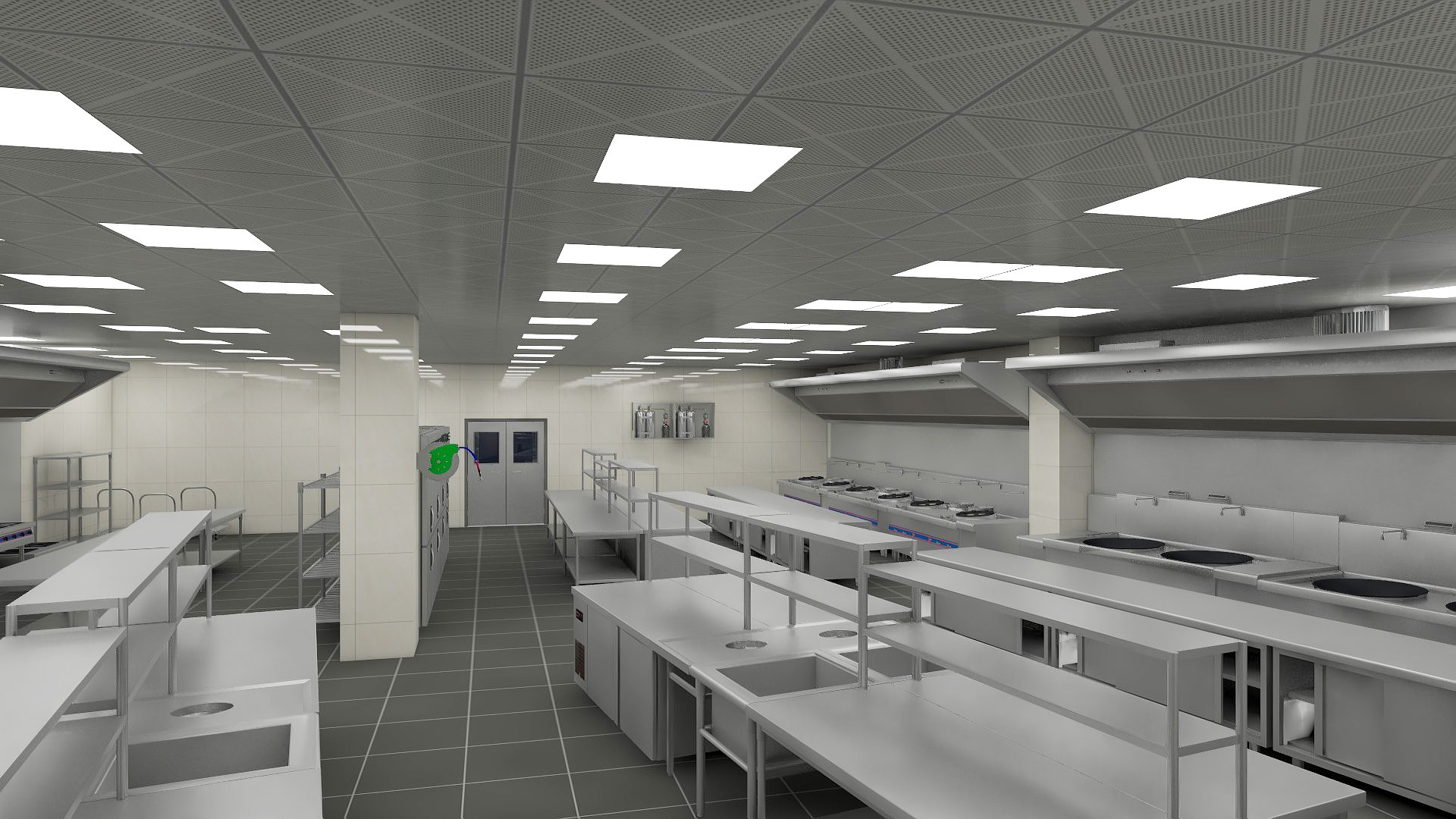 食堂处理量相对较大,服务人员较多,厨具设备本能需要真实安静,服务台柜、池塘、货架需要承重强度高,耐受性强。