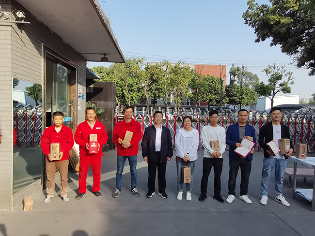 在各部门的负责人回顾完本部门的工作后,便开始了颁奖环节。获奖人员纷纷上台领奖,并和公司领导合影。