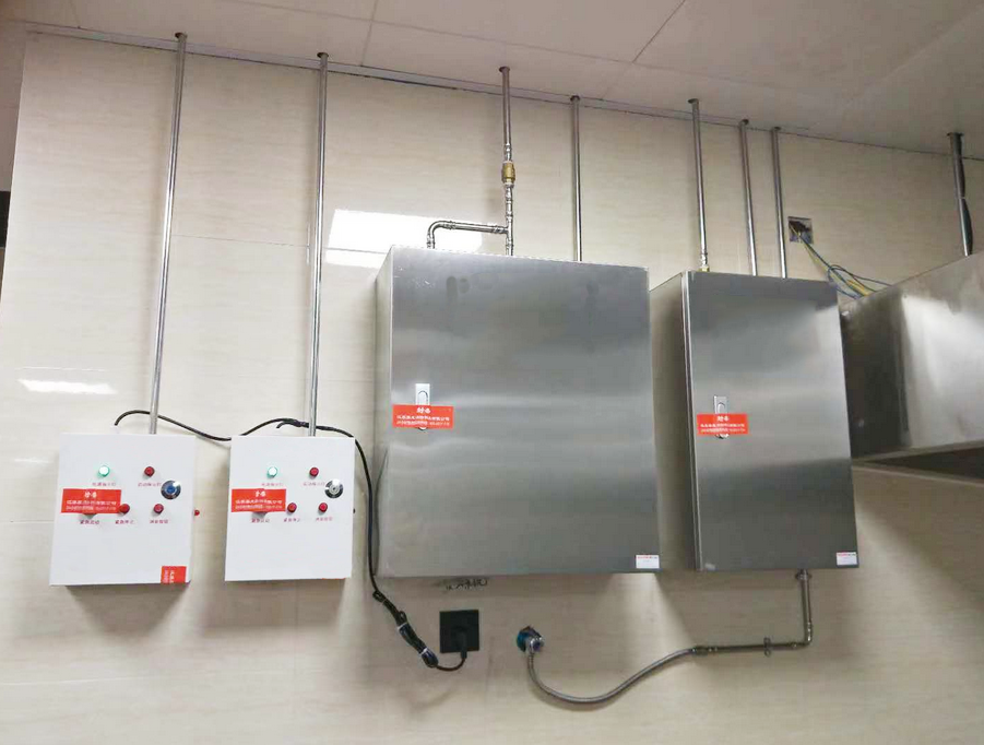 榴莲网站视频设备自动灭火装置的保护区域是指由一组热榴莲网站视频加工设备和相应长度的油烟机和通向烟道防火阀的排烟口组成的保护区域。一套热榴莲网站视频加工设备可由一套榴莲网站视频设备自动灭火装置保护,如果一套不足,可在纵向区域内由多套榴莲网站视频设备的自动灭火装置进行保护。