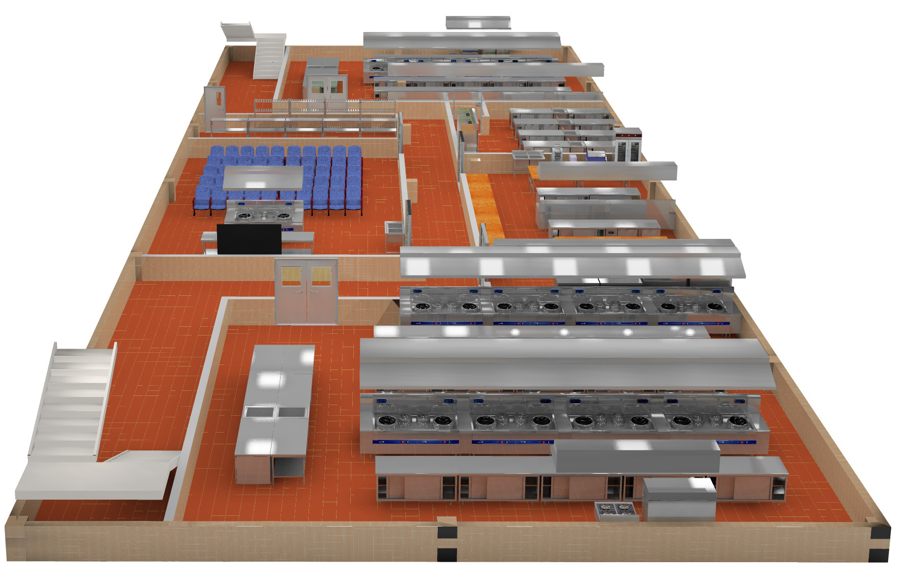 (9)门窗设计:根据适道位置设计各工作间、榴莲网站视频内外进出的门窗。宽口主要指具有传菜、回收餐具功能的通道。